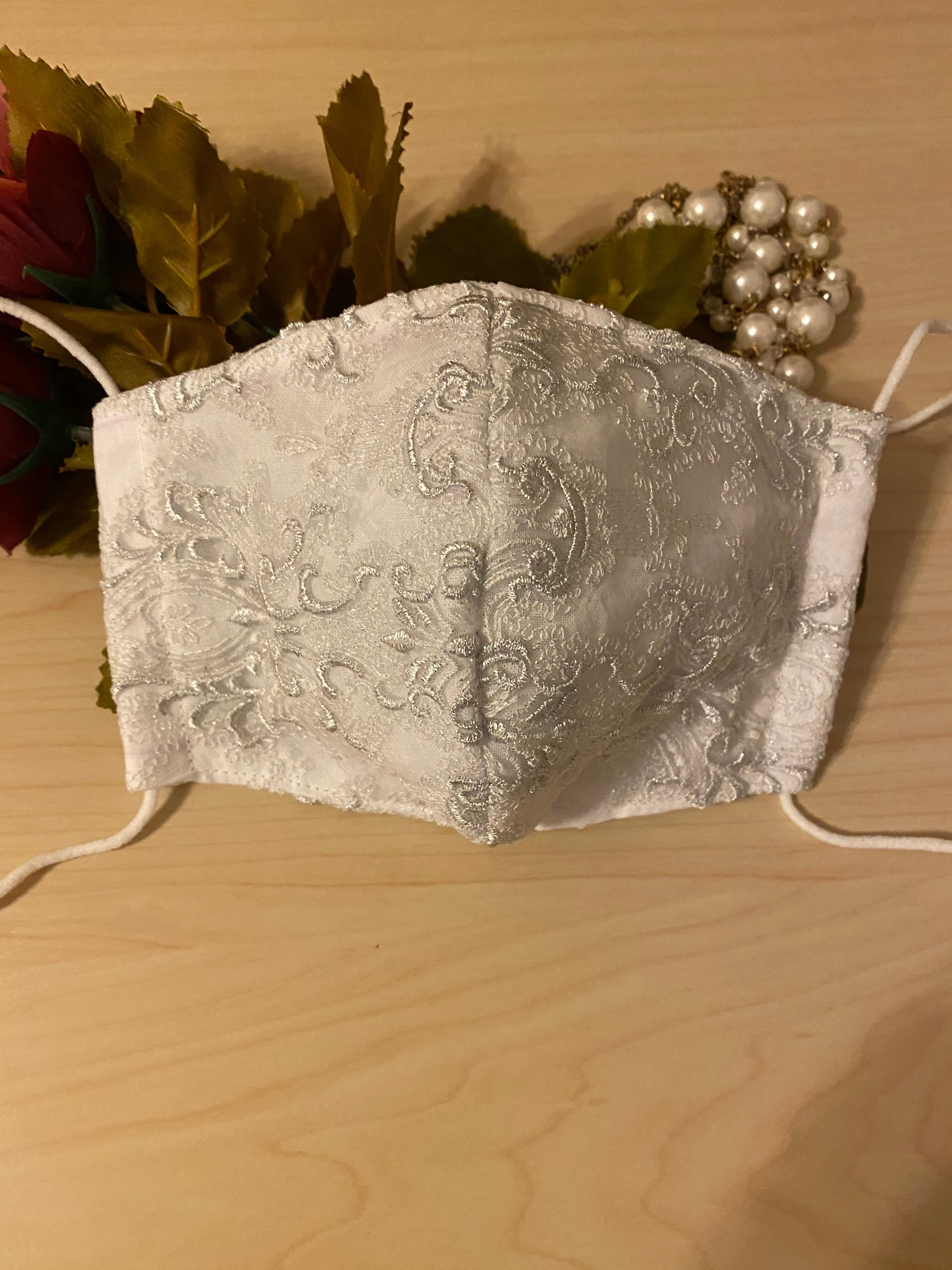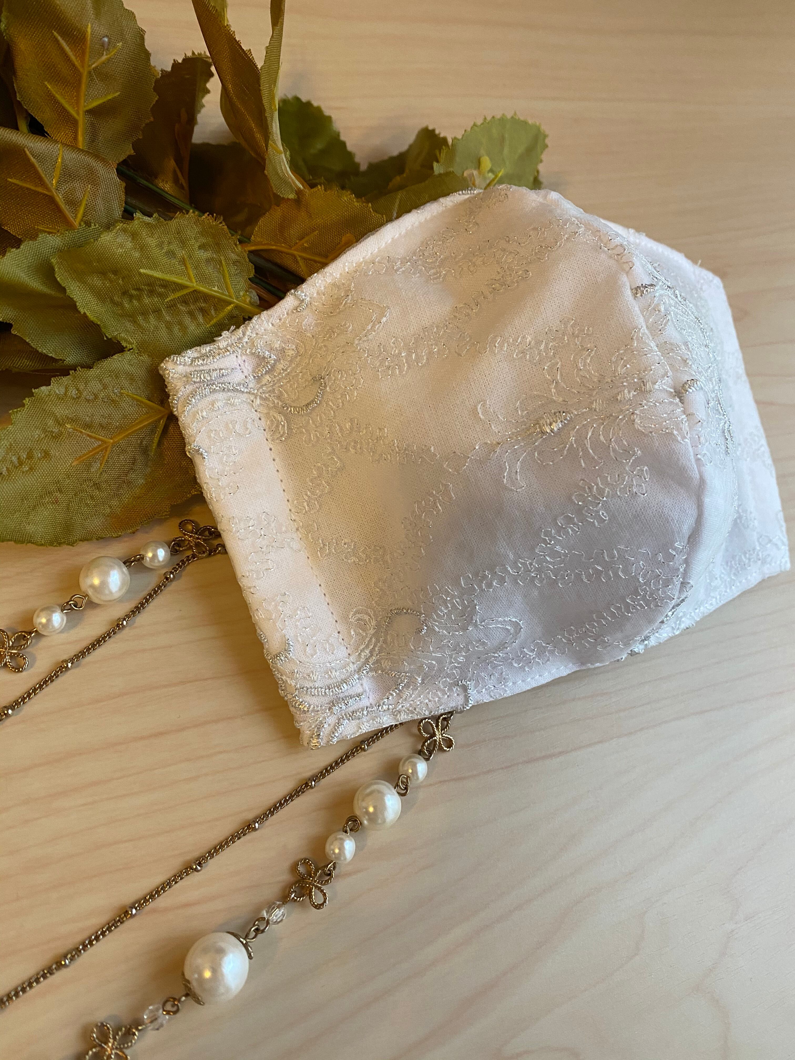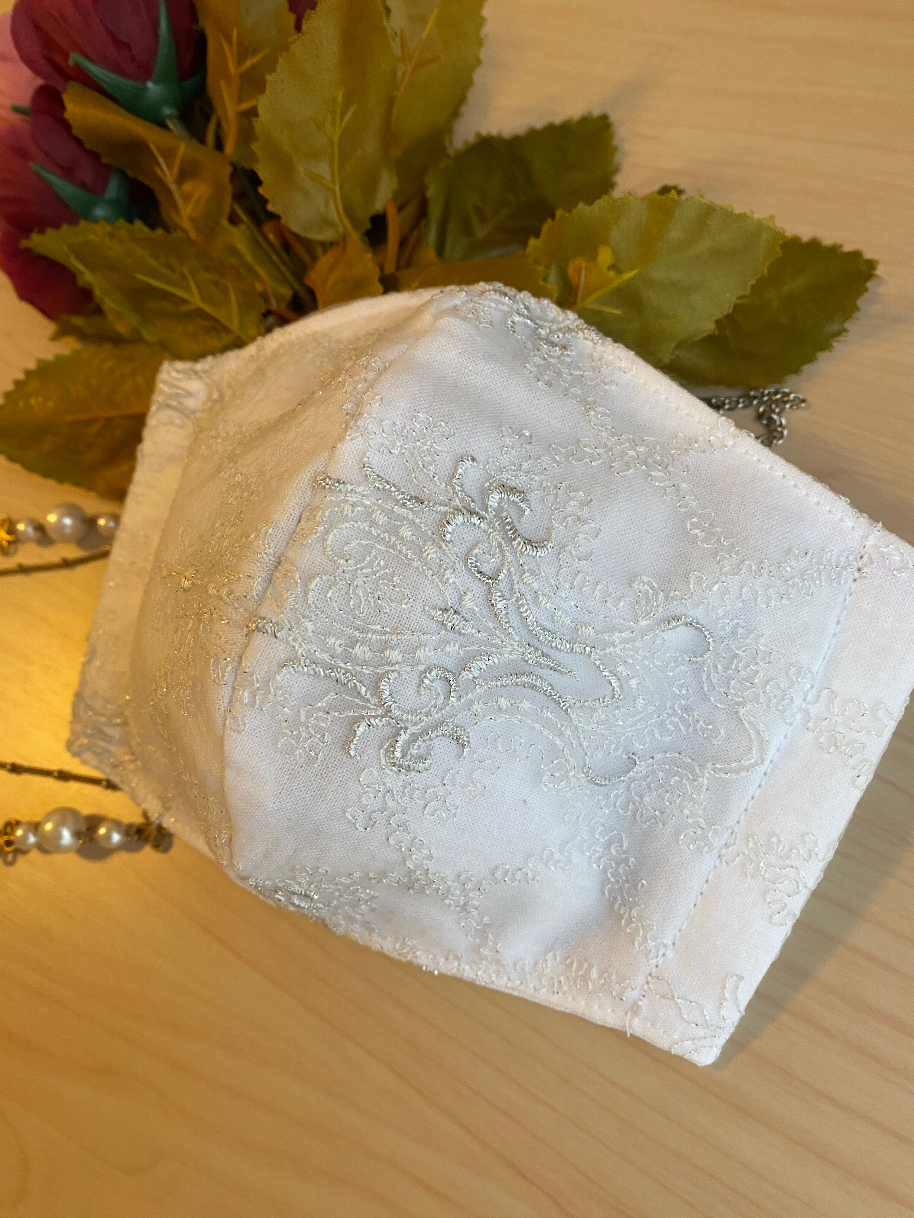 「完売」【ウエディングマスク」高級刺繍レース使用 まるでウエディングドレスを纏ったマスク 大きめ