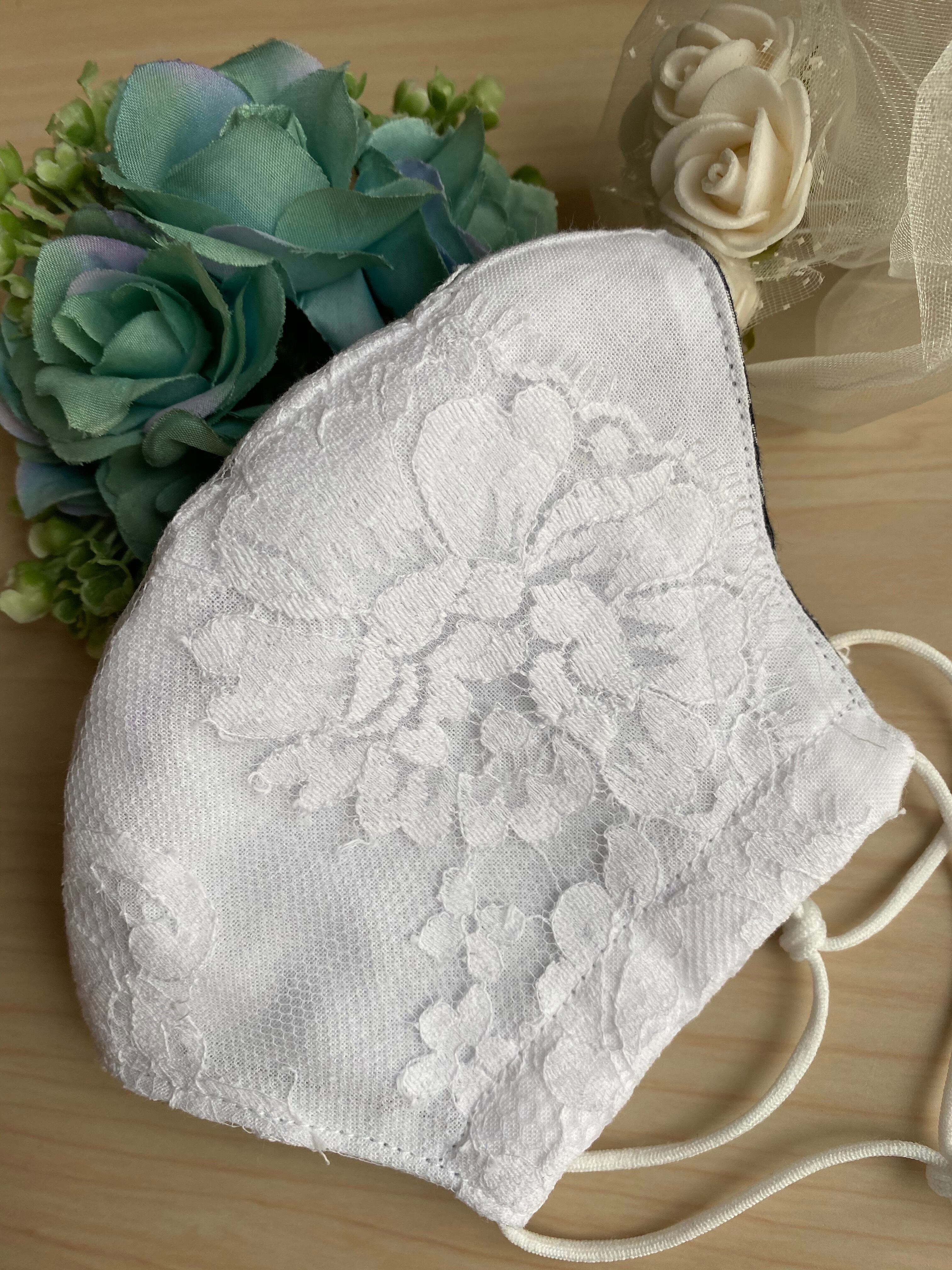 残りわずか「純白♡ウエディンマスク」ウエディンドレス使用の高級レース!まるでドレスをまとったようなマスク