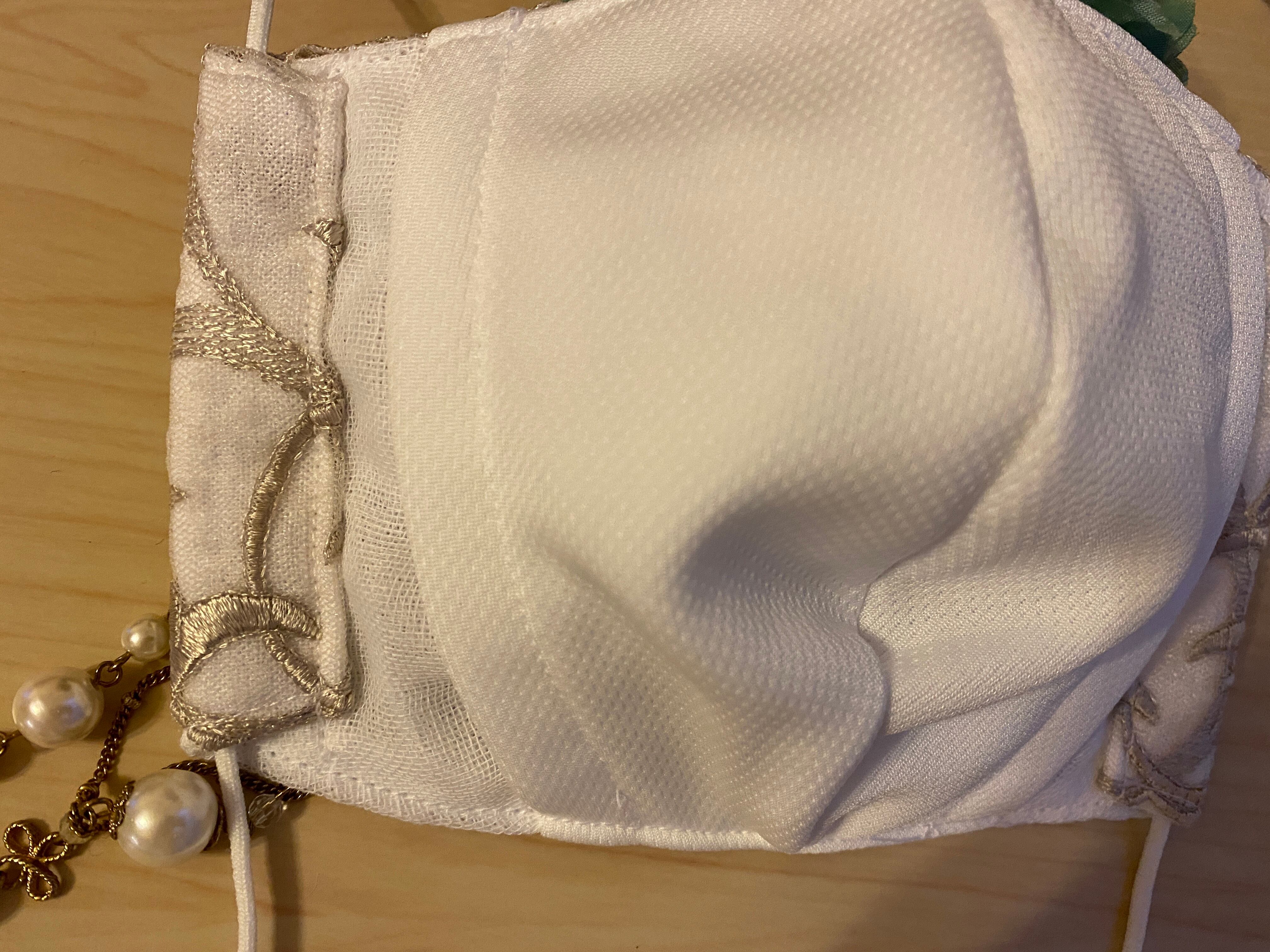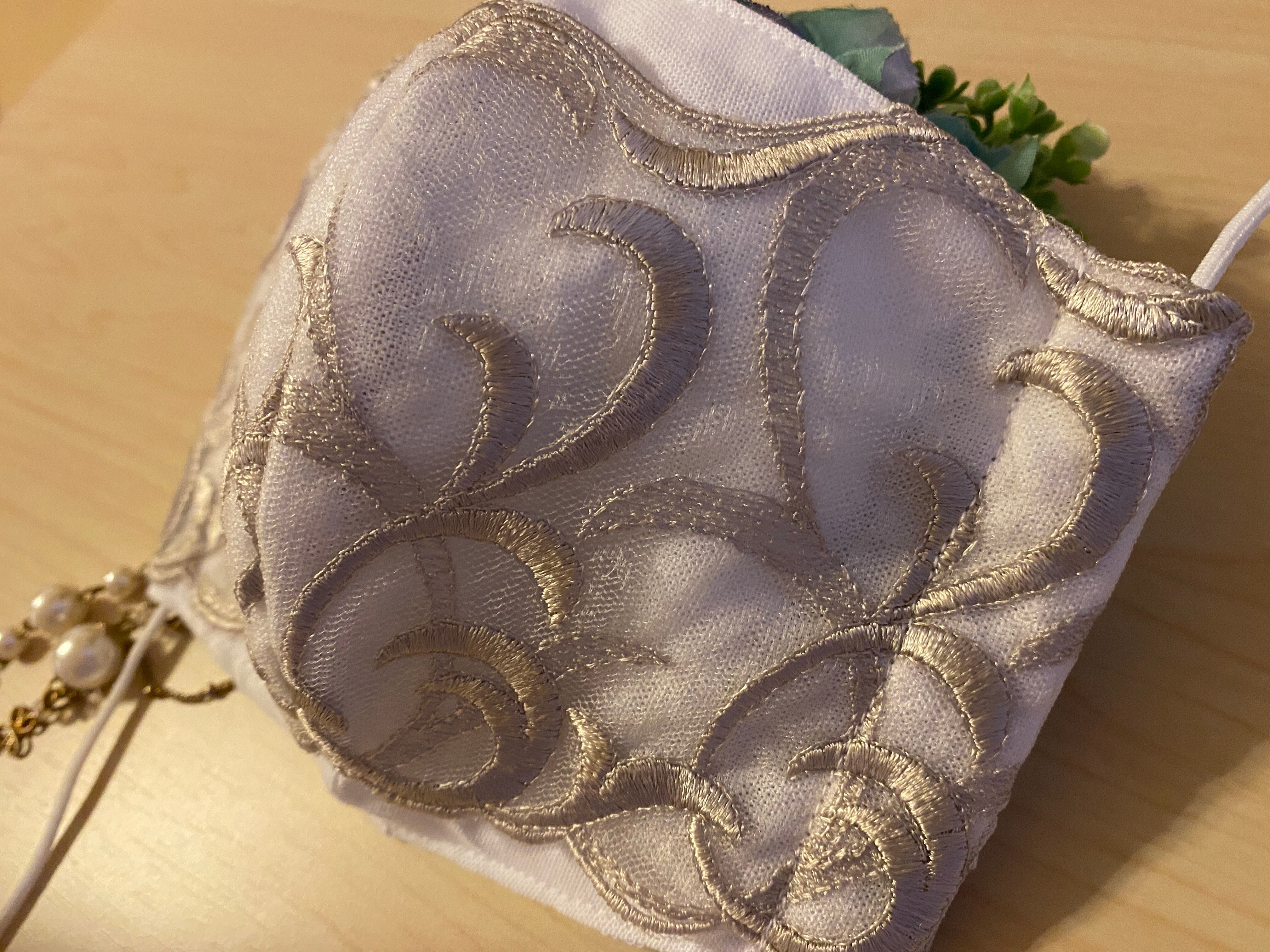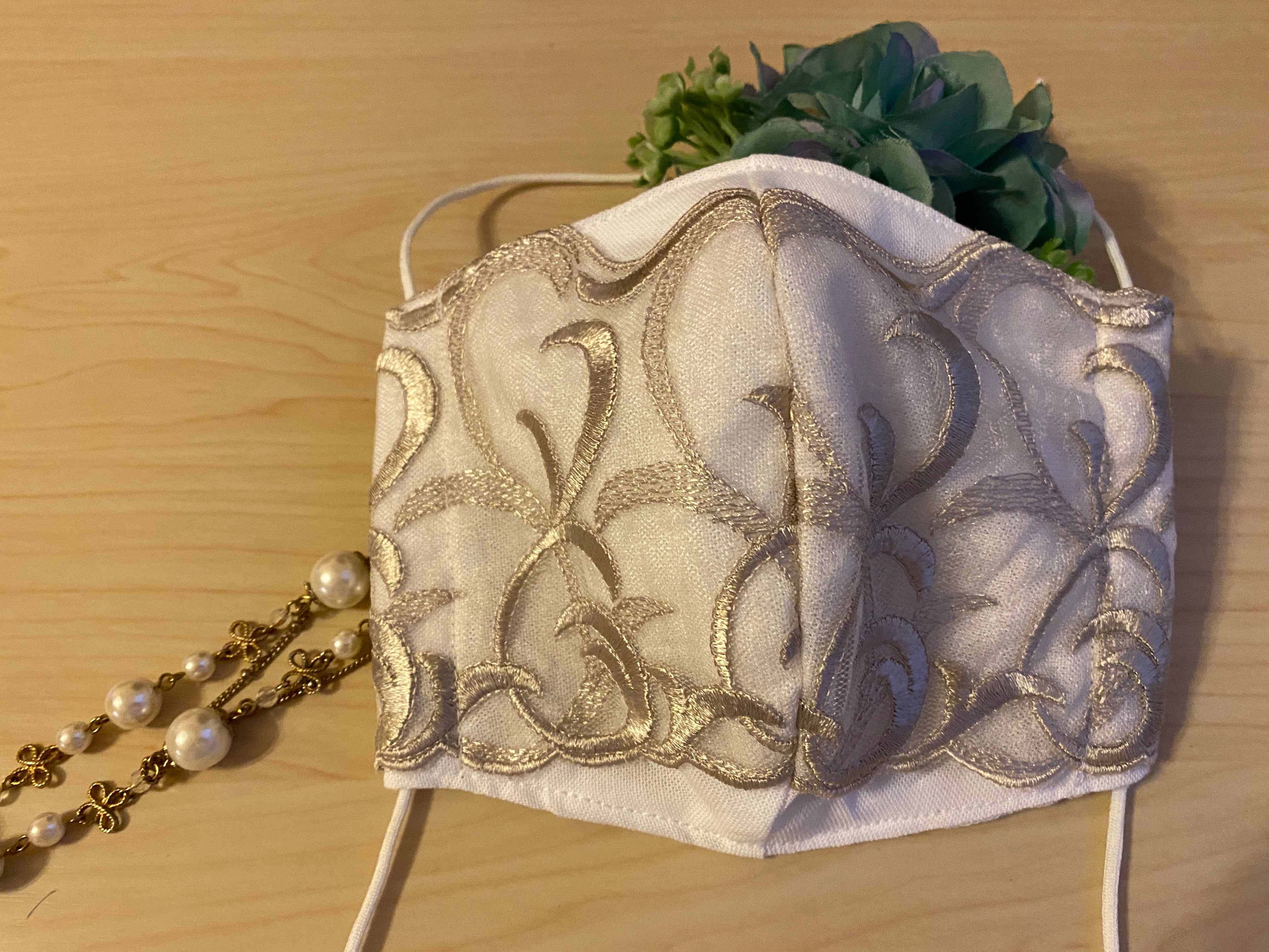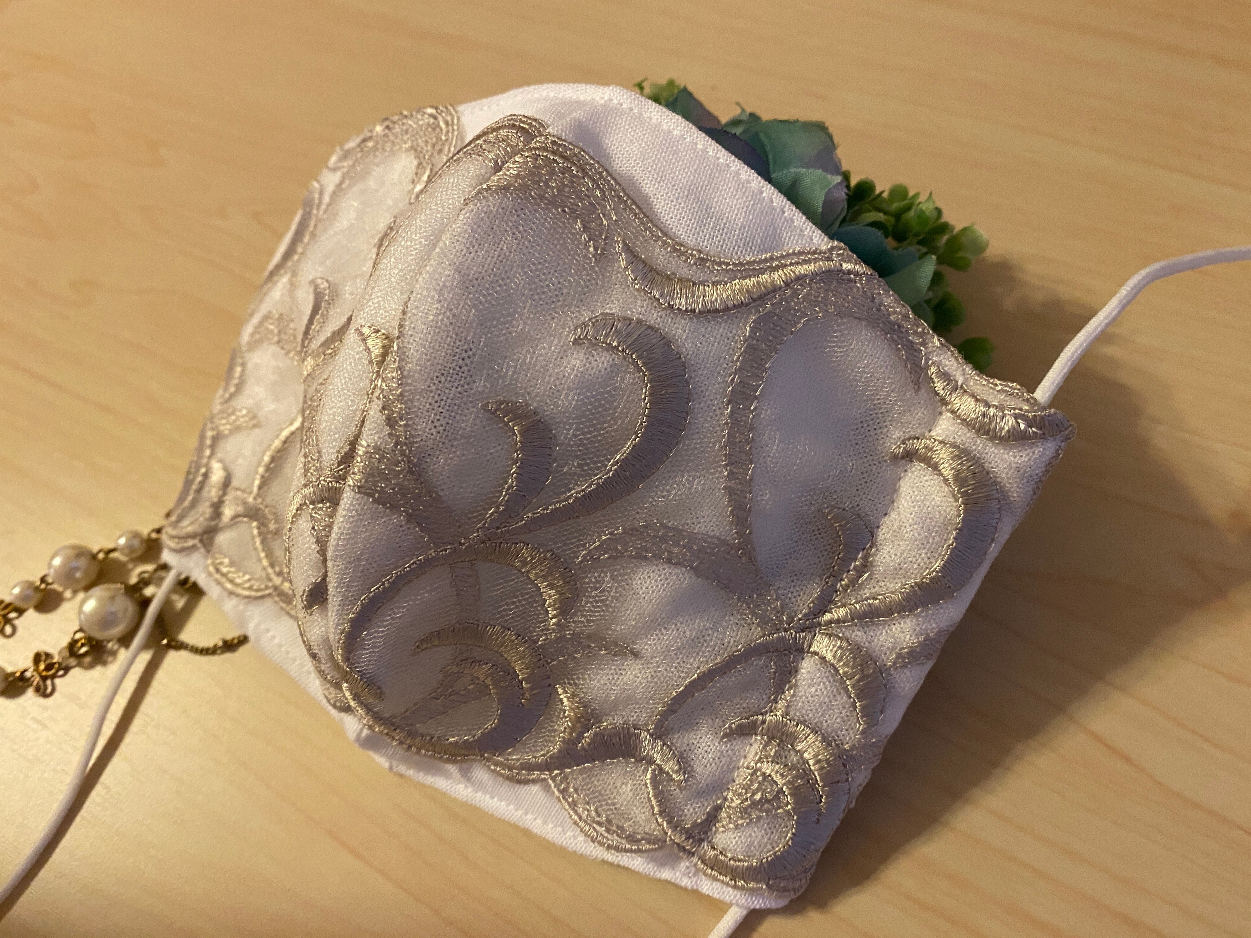 シルバーが輝く「ウエディングマスク」ポケット付き冷感メッシュ使用で快適マスク生活を☆