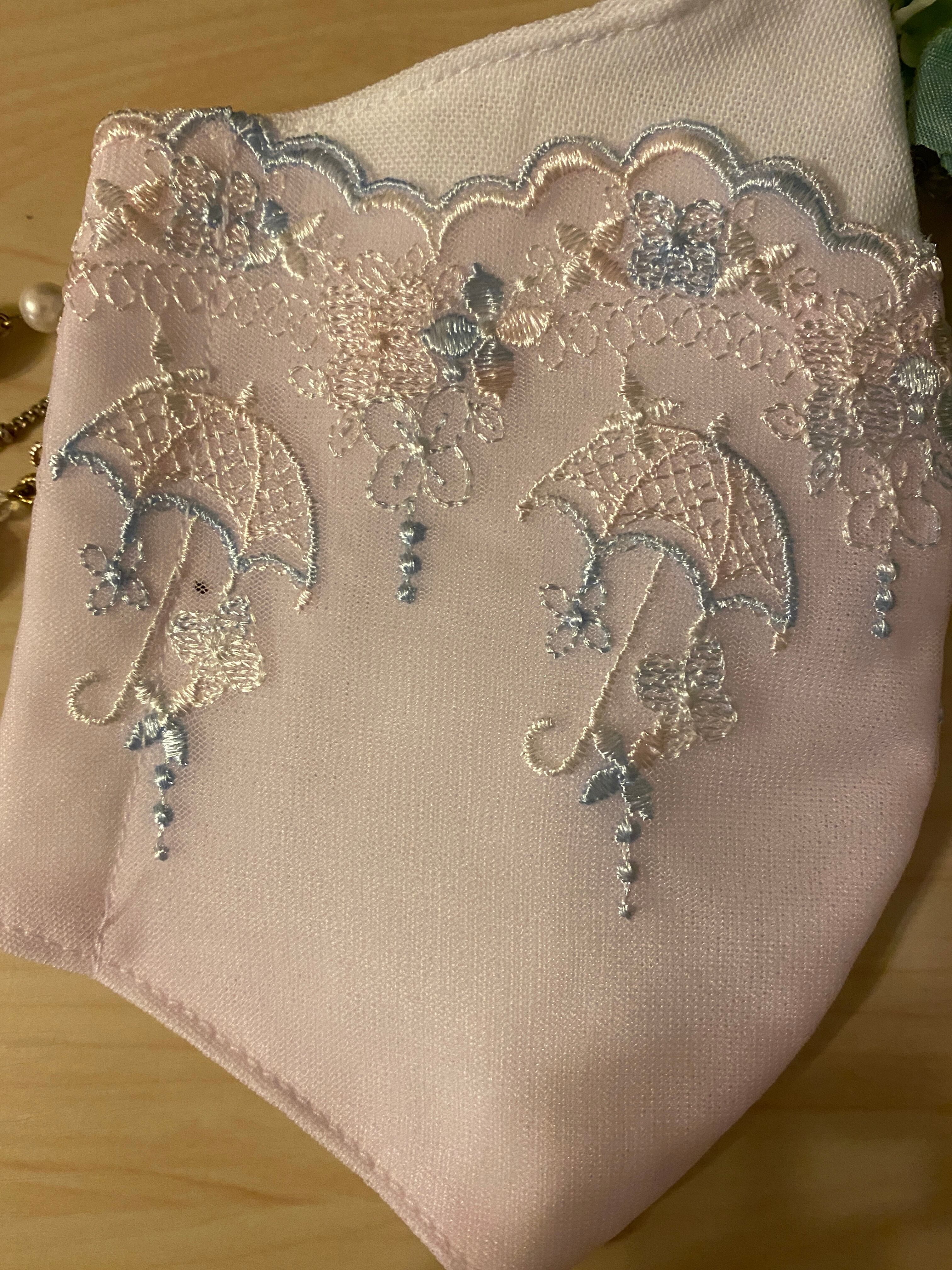 薄いベビーピンクに水色のアンブレラがキュートな「ウエディングマスク」シリーズです♡