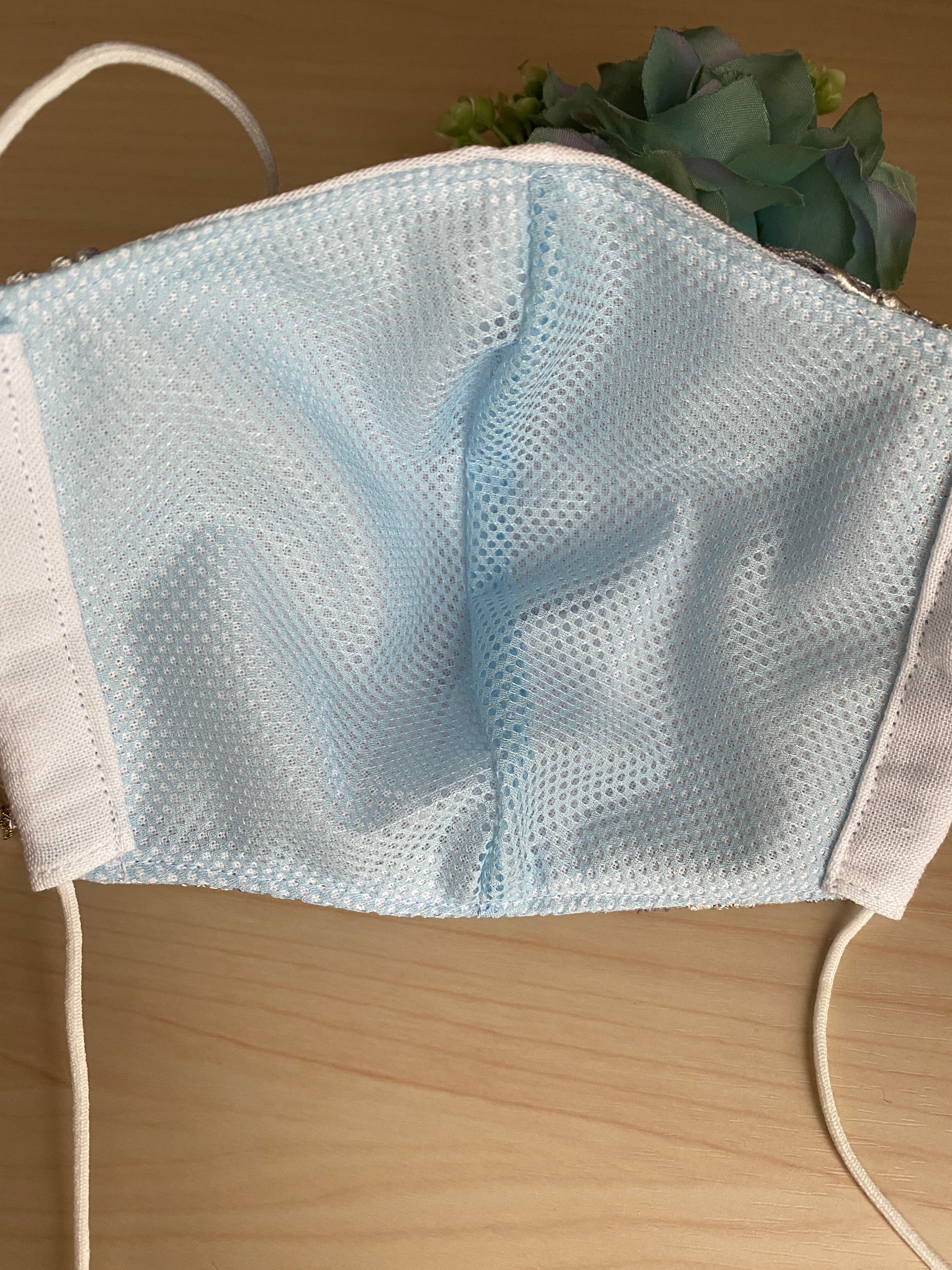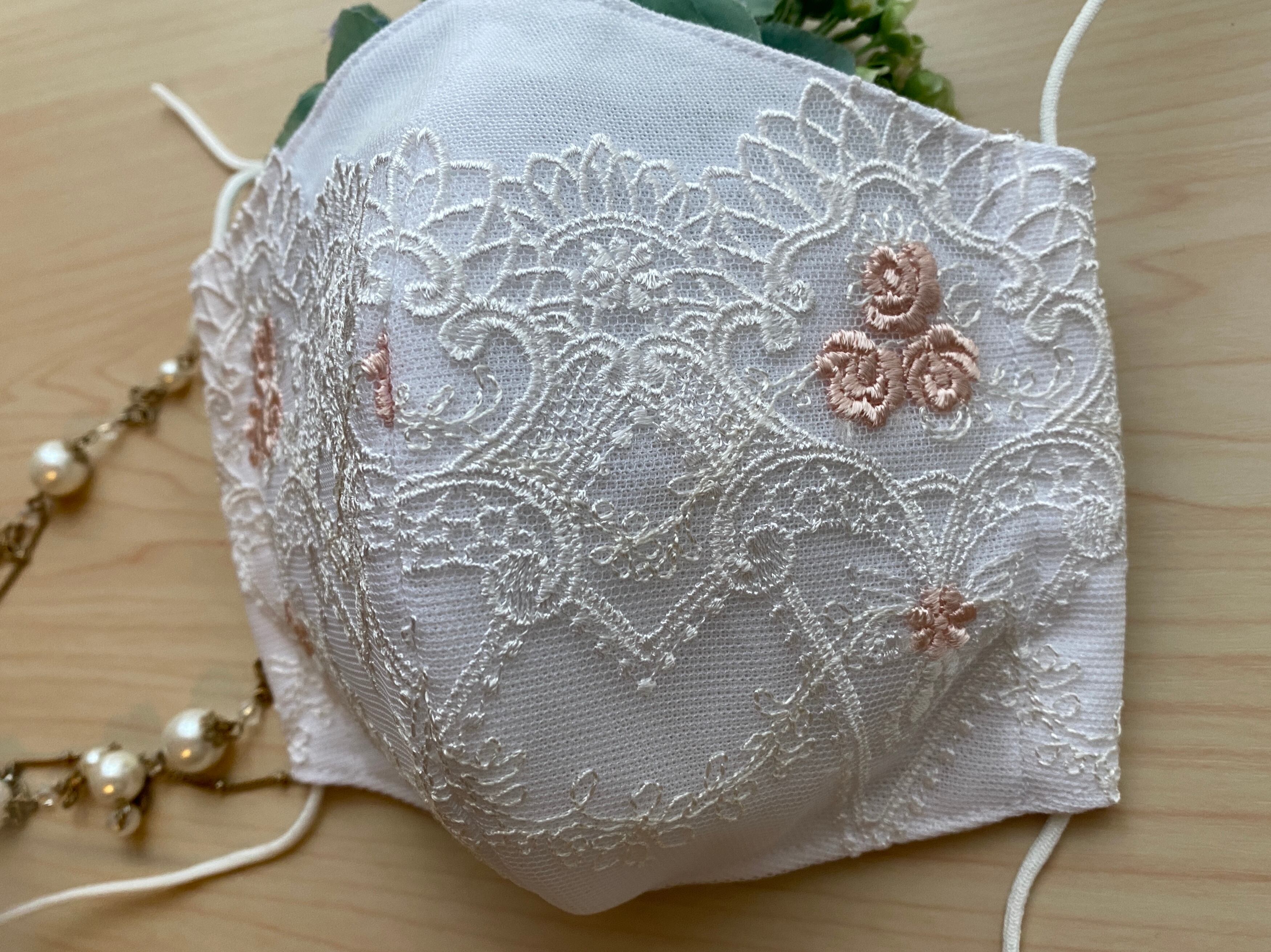 冷感メッシュUV&フィルター内蔵マスク♡ ウエディングマスク シリーズ 小さな薔薇の刺繍がポイント★