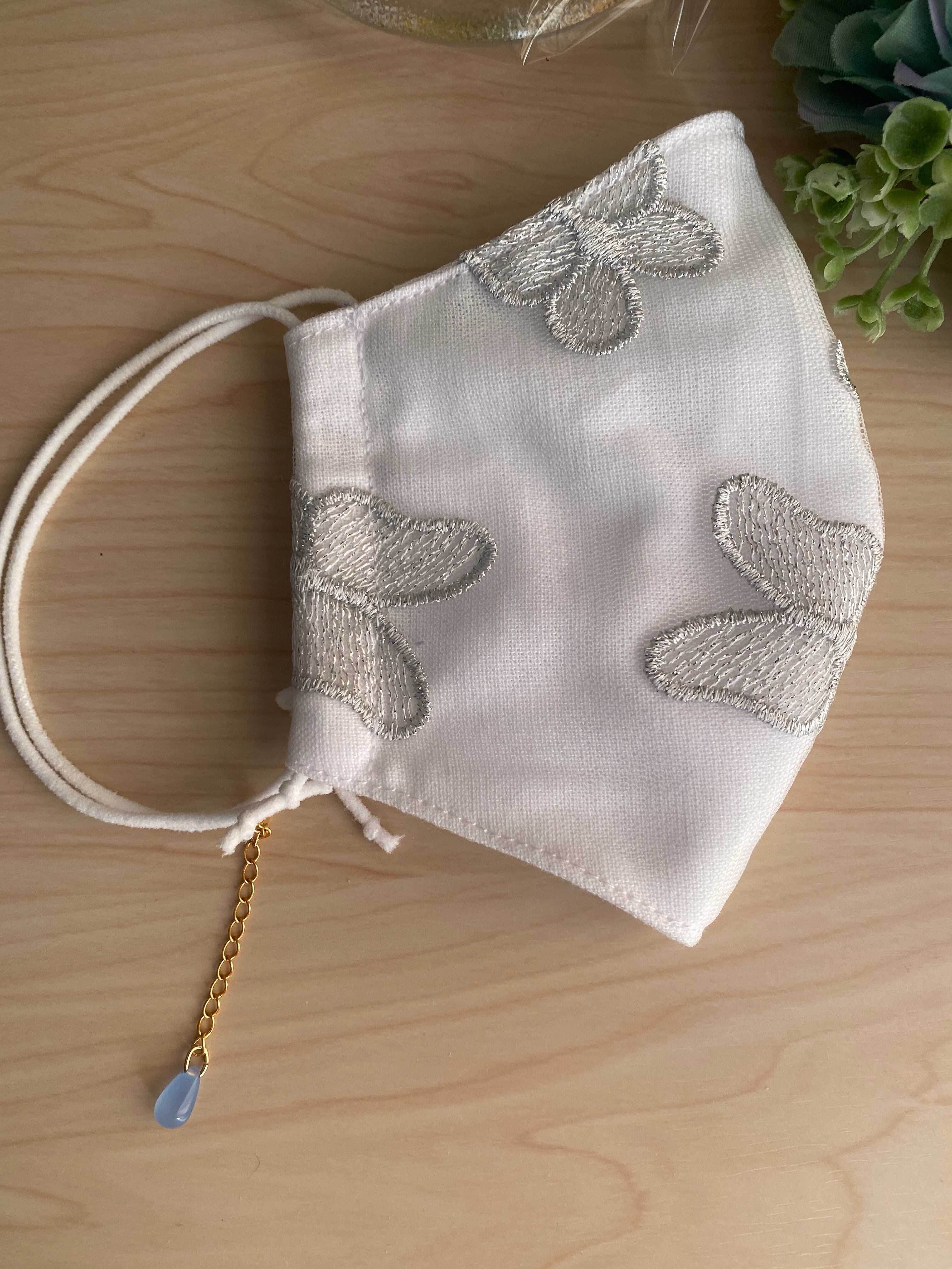 メッシュマスク❣️フィルター内蔵!珍しい蝶柄ブライダルレース使用