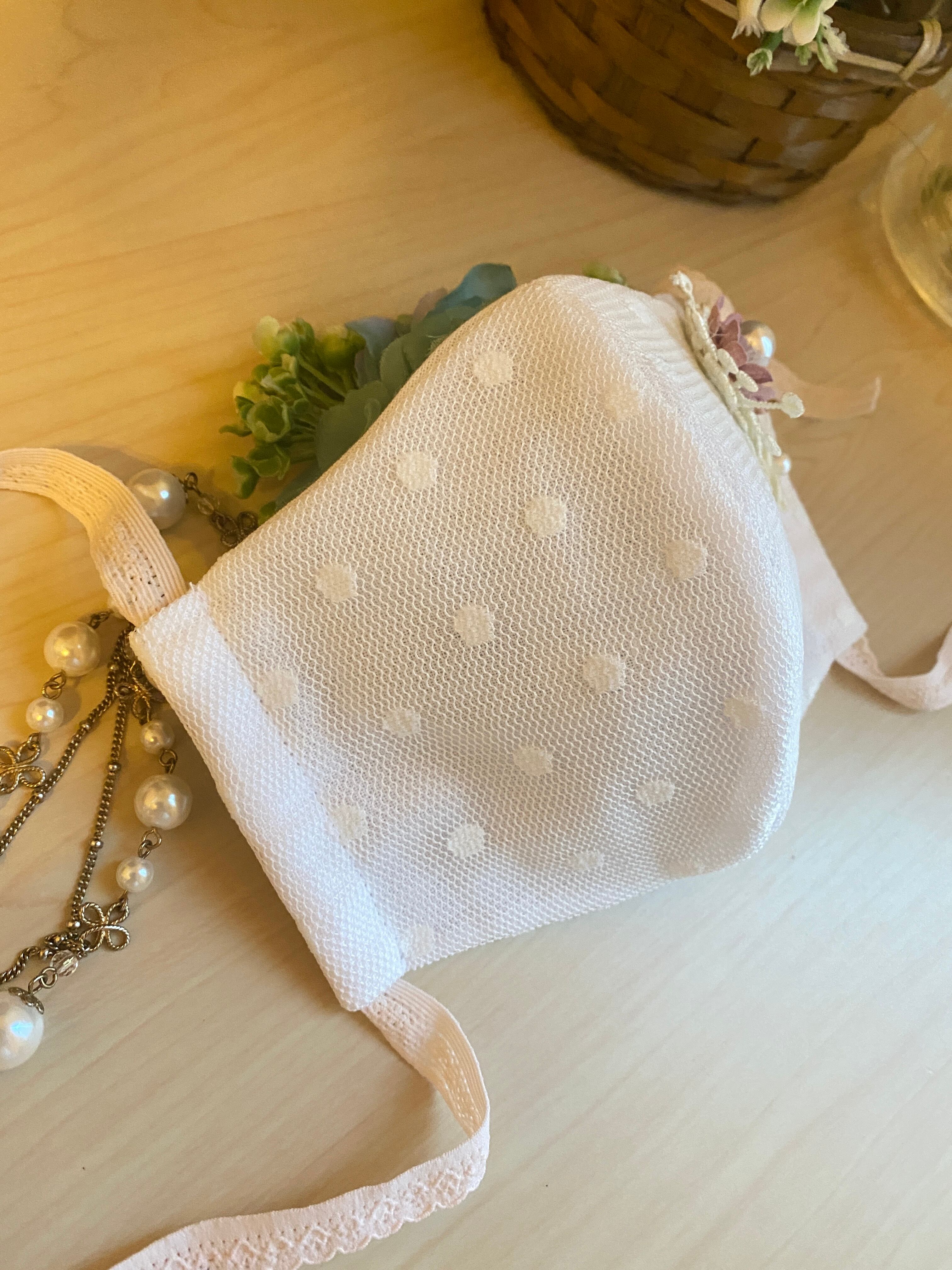 少し大きめのパールとドットチュールレースが、花嫁さんのドレスを引き立たせる事間違いないお品物となっております。