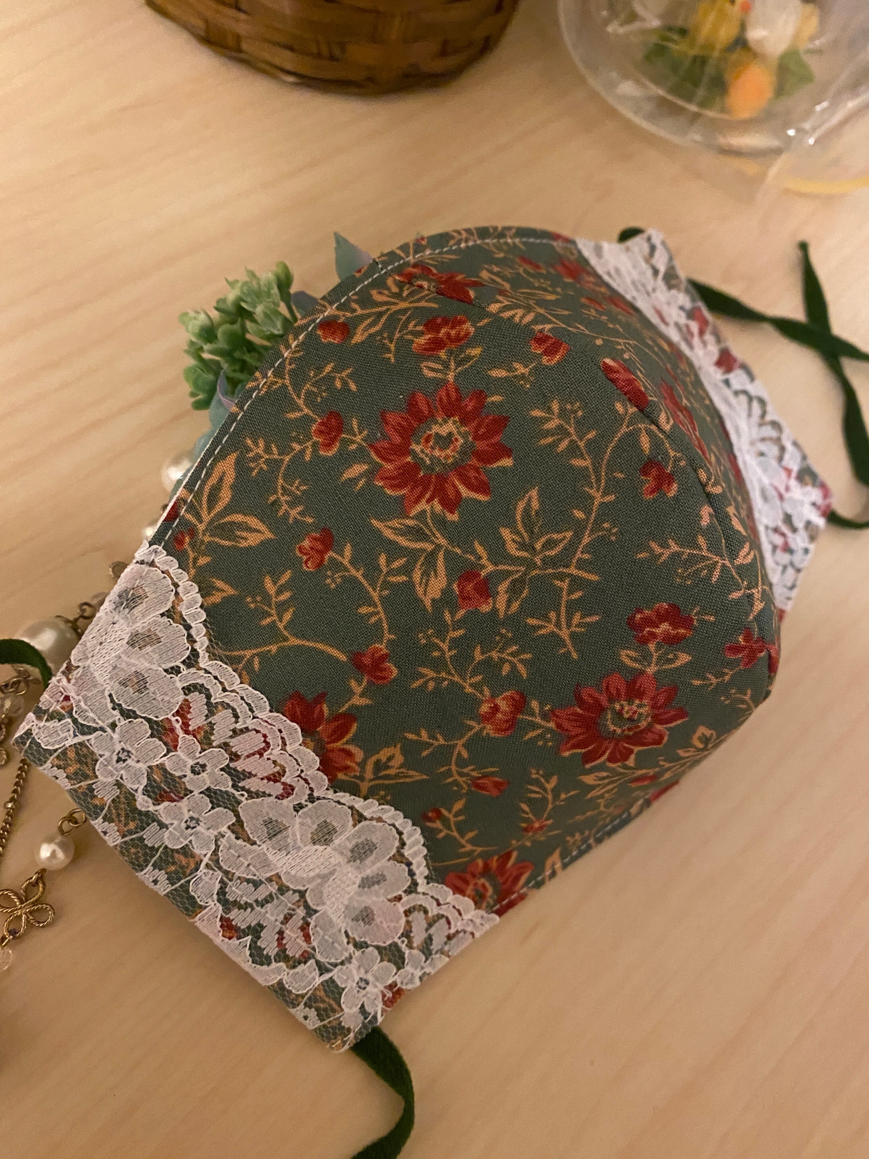 サイドレースクラッシック柄秋色マスク★洗えるフィルター内蔵でより安心に♡