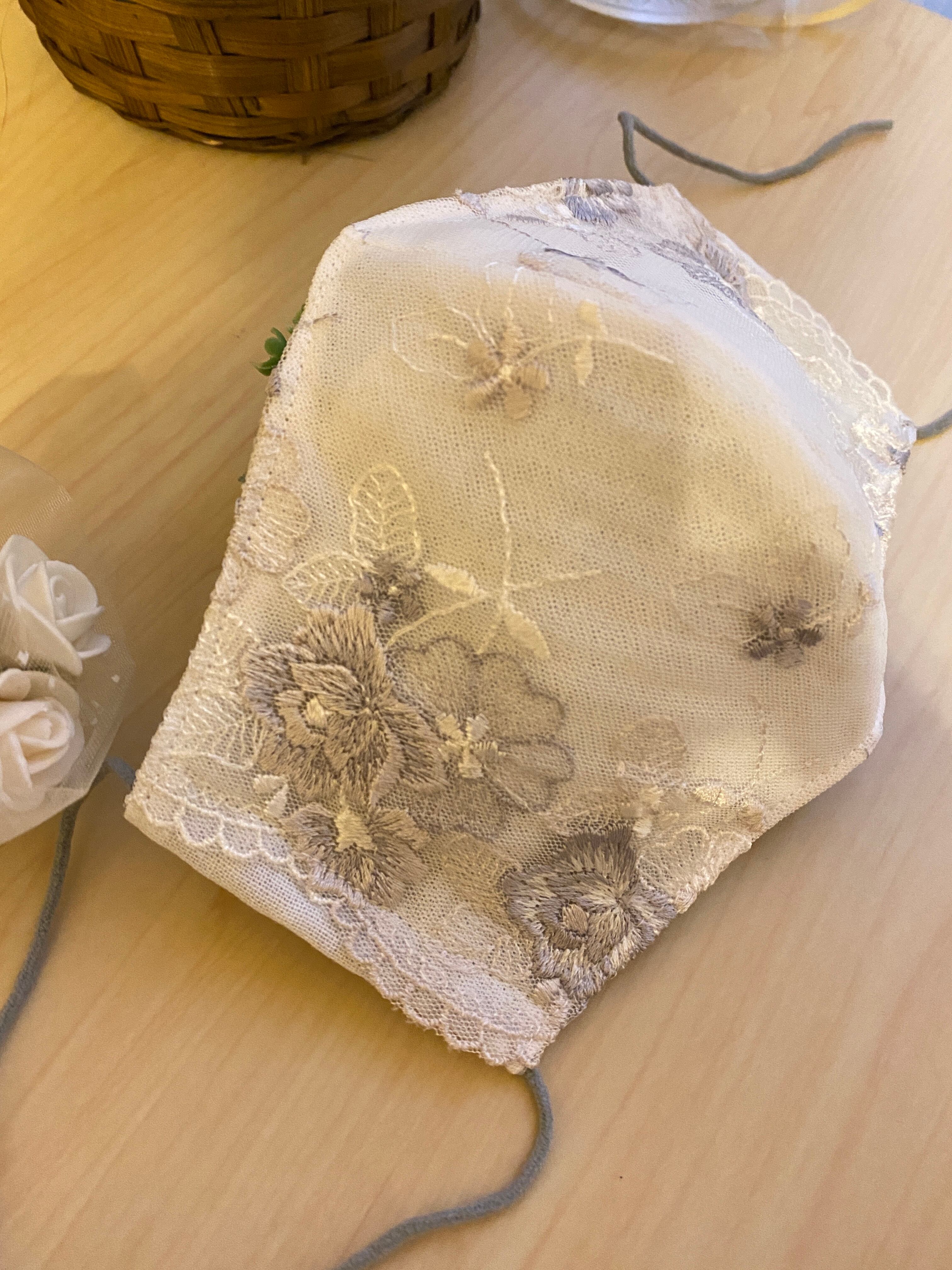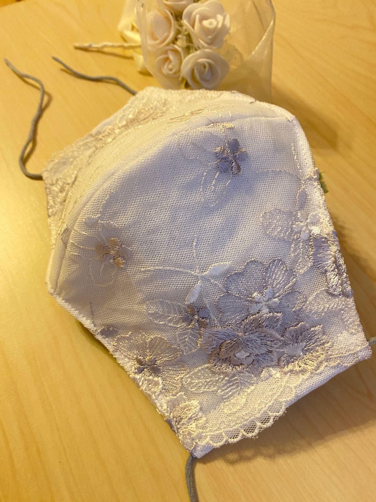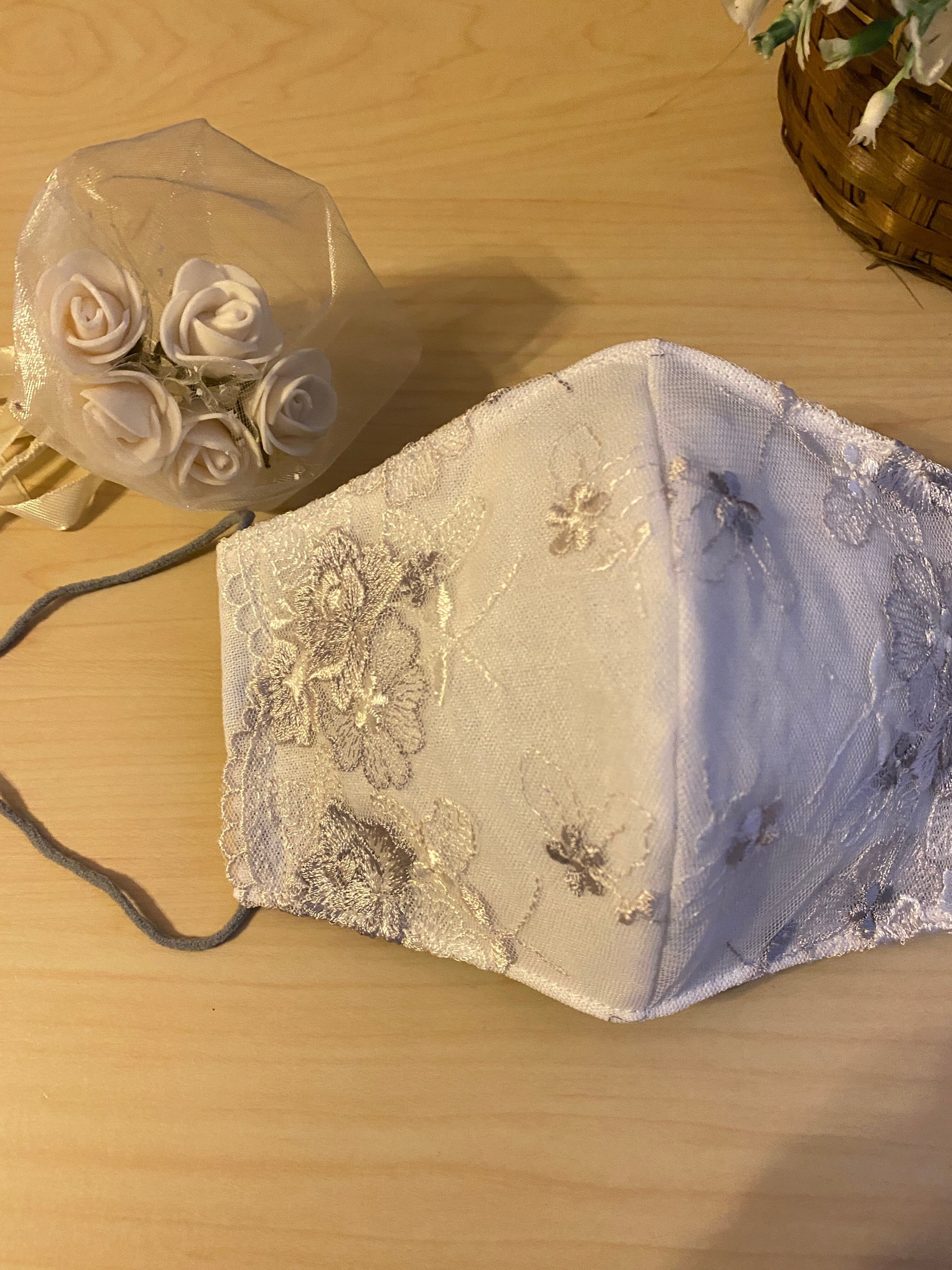 ホワイトにはシルバーグレージュが輝く少し贅沢なマスク❣️きめ細かいコットン使用❤︎フィルター内蔵