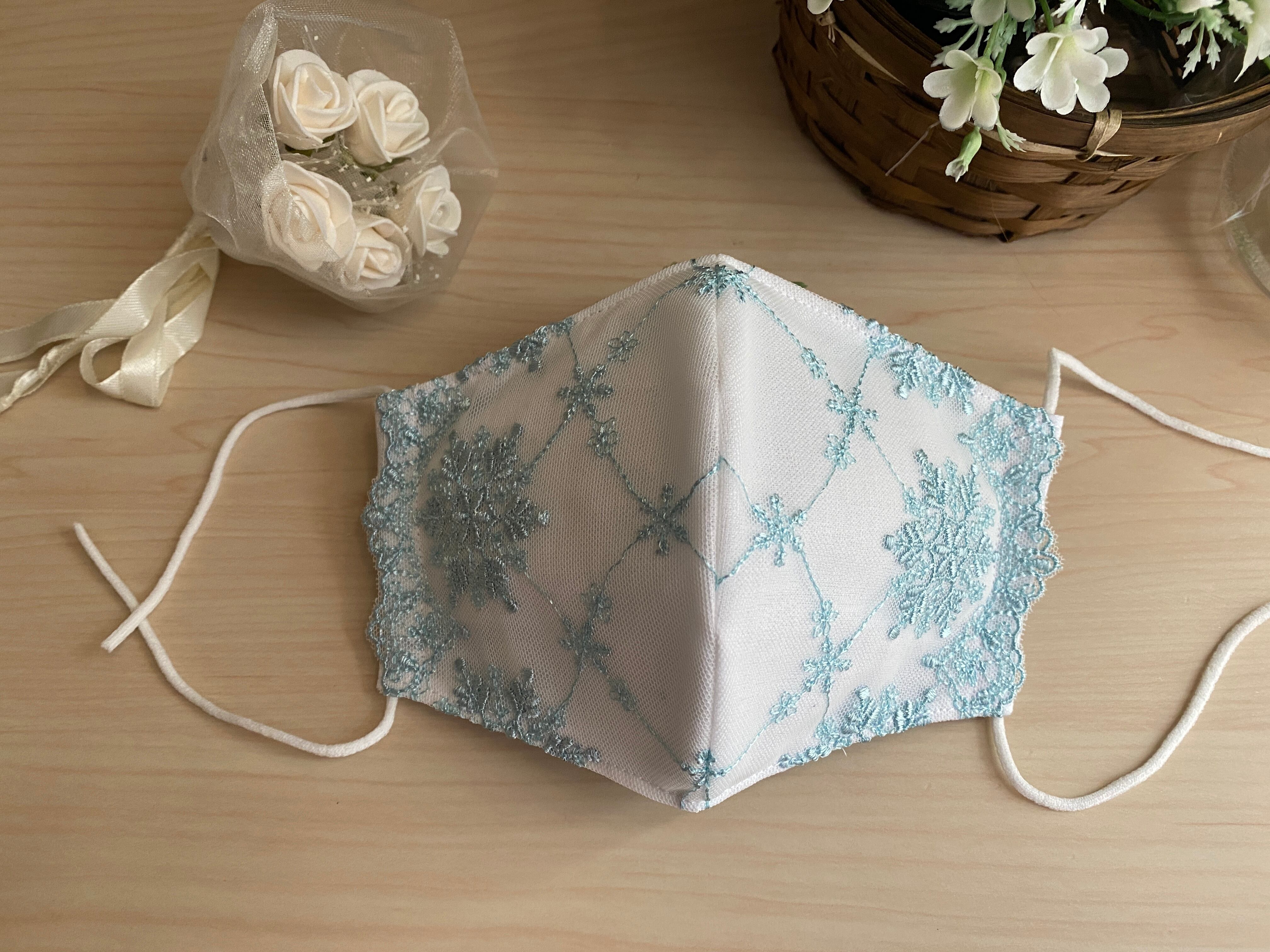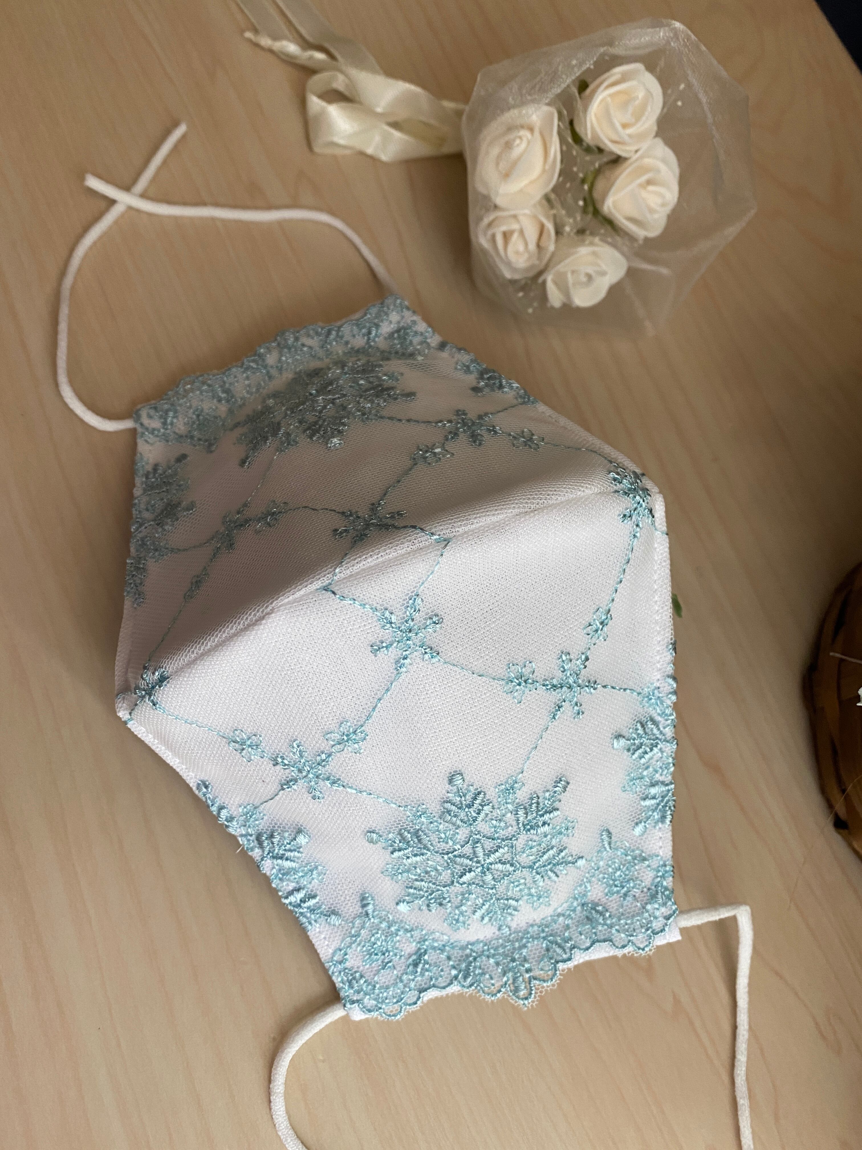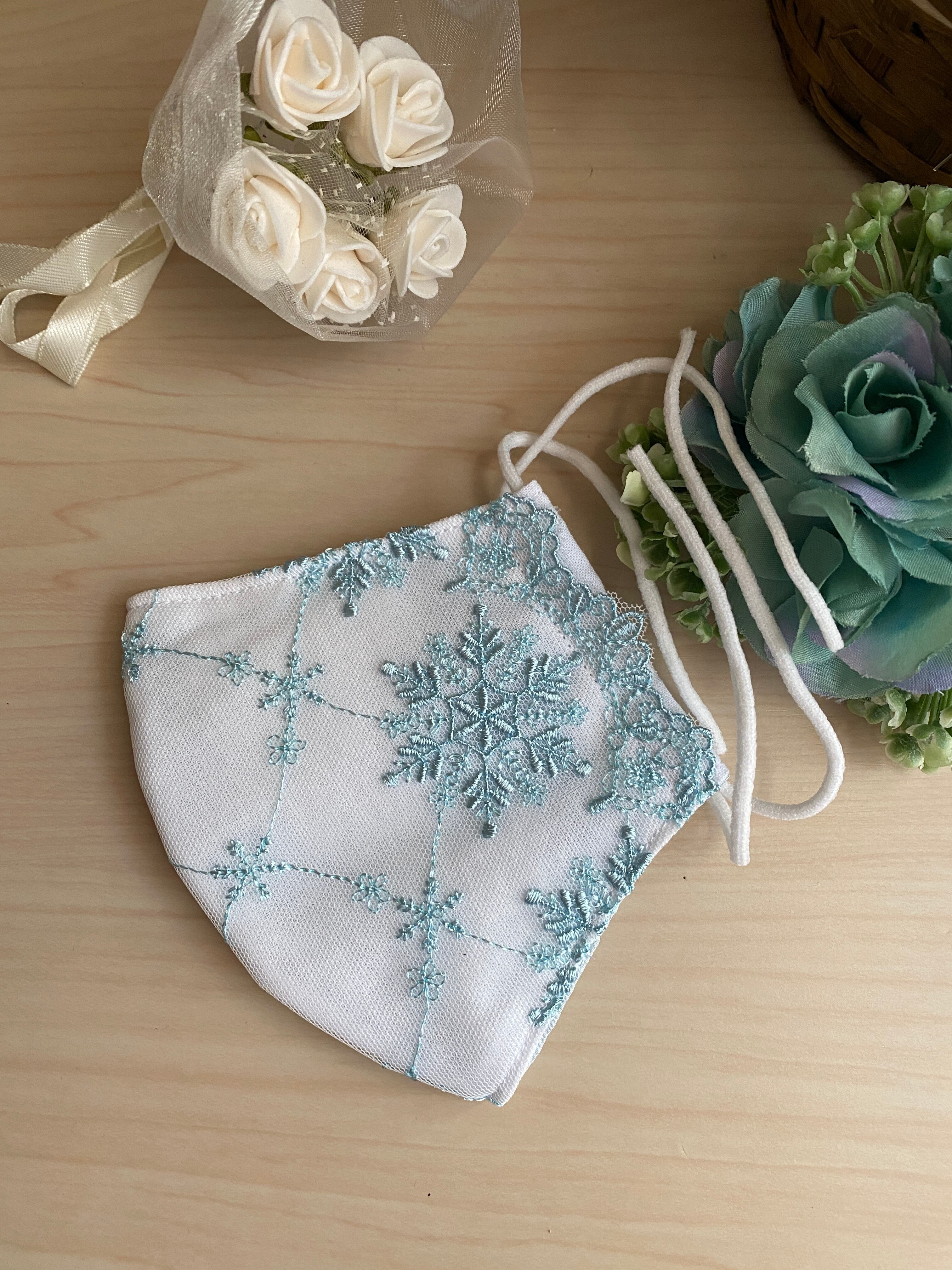 雪の結晶❄️のようなレースが可愛い冬マスクです。